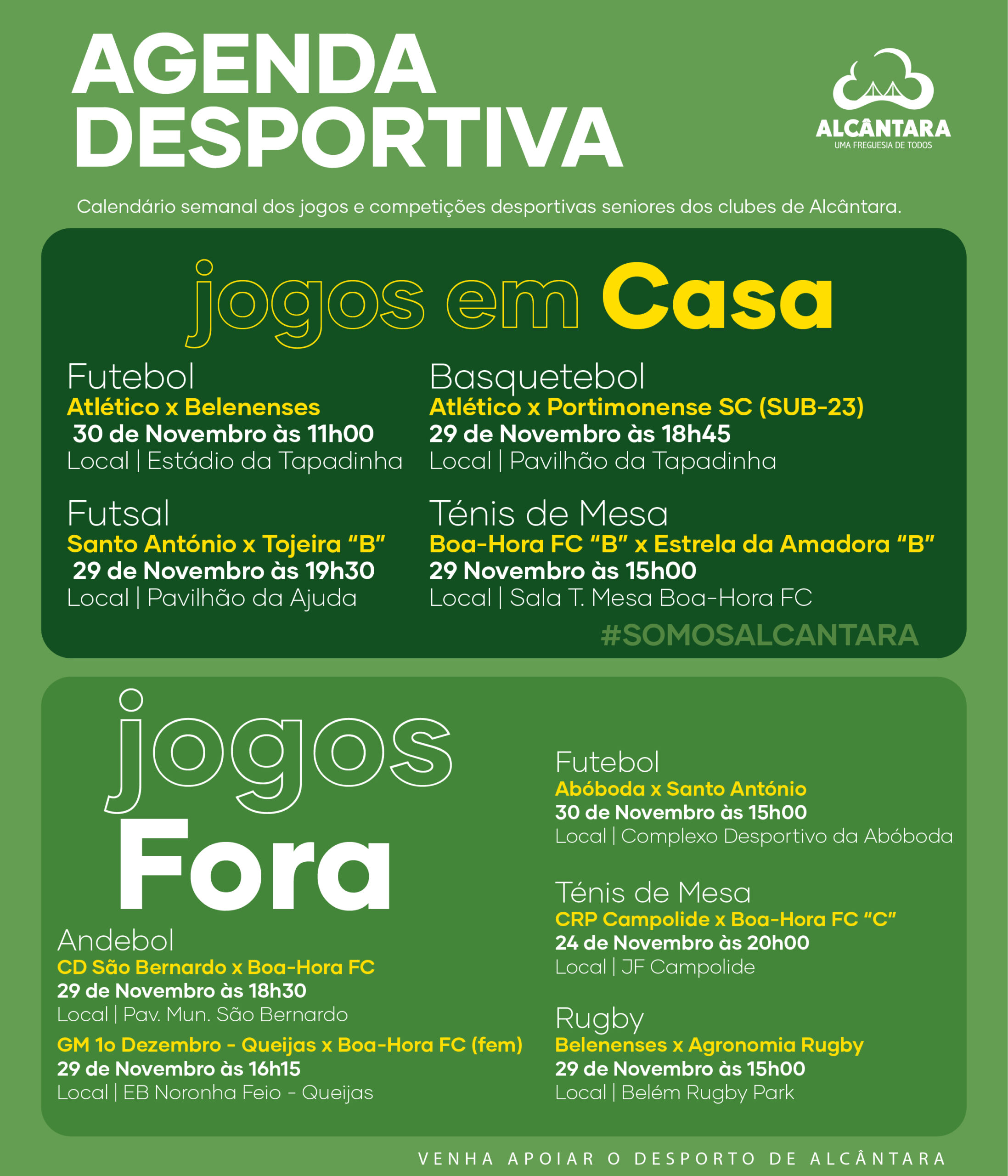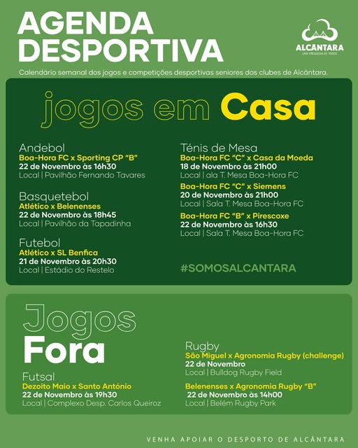 Através do link abaixo, podes consultar os jogos, competições e eventos desportivos que vão animar Alcântara ao longo da época.
